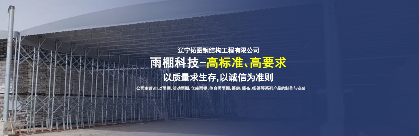 遼寧拓圖鋼結(jié)構(gòu)工程有限公司是一家專業(yè)從事推拉篷設(shè)計(jì)、制作、安裝、使用、維修的綜合性公司。公司主營:電動雨棚、活動雨棚、倉庫雨棚、體育類雨棚、篷房、篷布、帳篷等系列產(chǎn)品的制作與安裝。 遼寧拓圖鋼結(jié)構(gòu)工程有限公司堅(jiān)持以市場為導(dǎo)向,以科技創(chuàng)新為動力,以質(zhì)量求生存,以誠信為準(zhǔn)則,倡導(dǎo)求實(shí)、進(jìn)取、創(chuàng)新的企業(yè)精神。“科學(xué)的管理、嚴(yán)謹(jǐn)?shù)脑O(shè)計(jì)、 的制作安裝、嚴(yán)格的質(zhì)量檢測、良好的后期服務(wù)成就企業(yè)的信譽(yù),為您提供優(yōu)質(zhì)服務(wù)?! ?nbsp; 遼寧拓圖鋼結(jié)構(gòu)工程有限公司傾力于開發(fā)應(yīng)用三維空間結(jié)構(gòu)與新材料的結(jié)合,將廣告藝術(shù)視覺表現(xiàn)形式與張力膜材科學(xué)的結(jié)合,推出多彩推拉蓬,依靠先進(jìn)的科學(xué)技術(shù),將推拉蓬建筑表現(xiàn)形式無限延伸,立志走在建筑科學(xué)的前沿,引導(dǎo)建筑時(shí)尚潮流,我們的目標(biāo)是使推拉蓬建筑在中國發(fā)展壯大?! ?nbsp; 遼寧拓圖鋼結(jié)構(gòu)工程有限公司憑著極強(qiáng)的事業(yè)熱情和豐富的專業(yè)經(jīng)驗(yàn)以“勤勉進(jìn)取、銳意創(chuàng)新、至誠至信”的精神使公司得到迅速健康發(fā)展,業(yè)務(wù)范圍遍及全國??茖W(xué)的管理、嚴(yán)謹(jǐn)?shù)脑O(shè)計(jì)、高標(biāo)準(zhǔn)的制作安裝流程,嚴(yán)格把控產(chǎn)品質(zhì)量,熱誠的售后服務(wù)是企業(yè)競爭力的源泉?! ?nbsp; 遼寧拓圖鋼結(jié)構(gòu)工程有限公司人愿以最誠摯的態(tài)度,歡迎廣大客戶的蒞臨與溝通!愿為市場提供優(yōu)...
